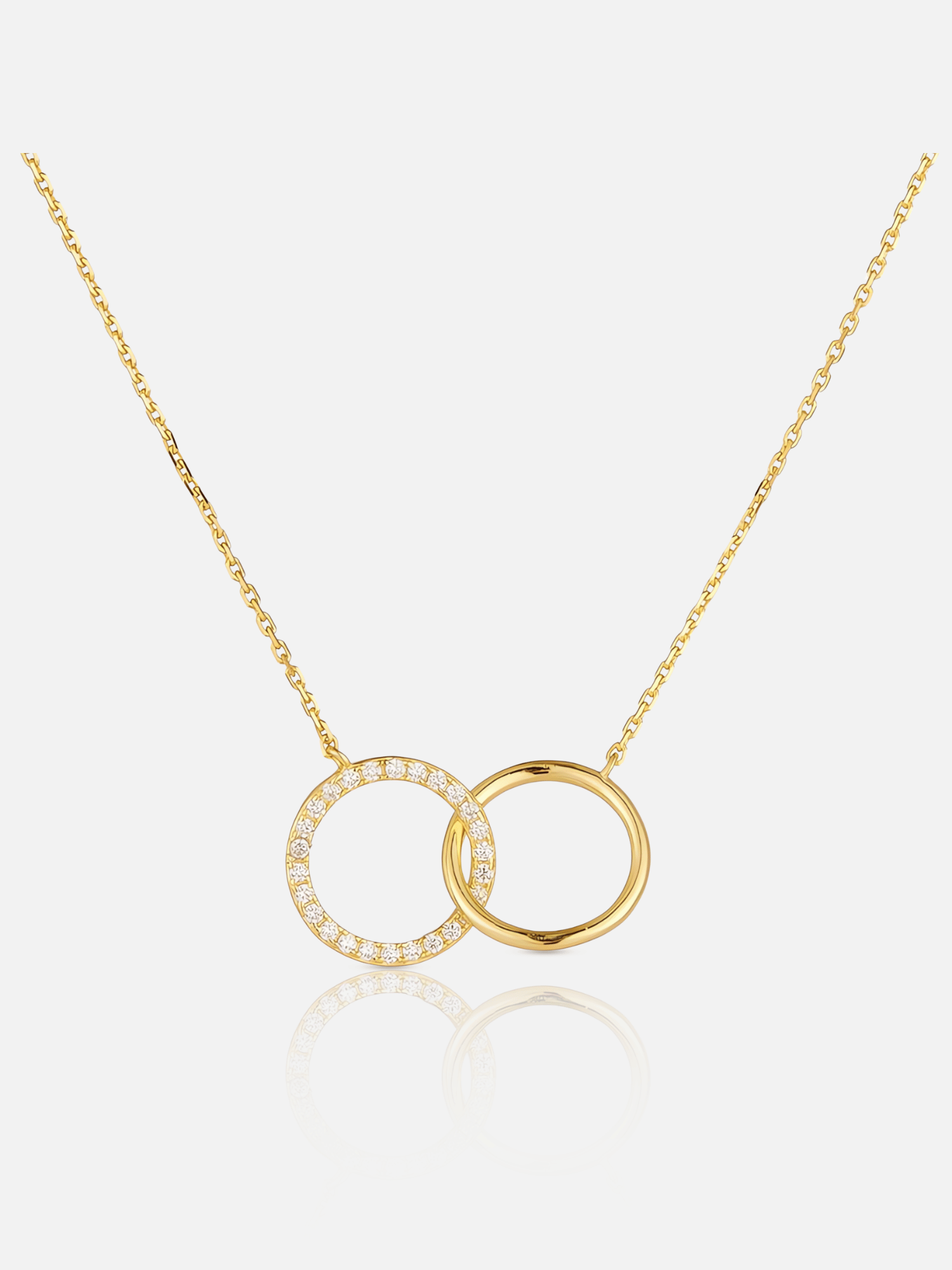 Elevate your style with Double Circle Necklace features sparkling crystals that illuminate the interlocking circles. Expertly crafted from 925 sterling silver and 18k gold plating for a luxurious touch. Perfect for everyday elegance or special occasions.